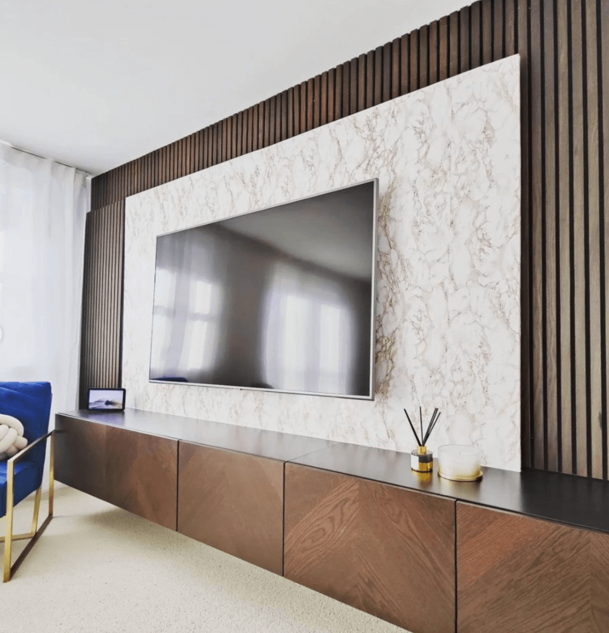 With Slatpanel®’s range of ready-made acoustic wood panelling, you can make any wall a work of art. Made from contemporary grade wood veneer that’s been carefully chosen for its consistency and character. Each panel pre-bonded to a rigid recycled felt backing, Slatpanel® promises soundproofing that’s second to none. Each box contains two panels measuring 94.49" x 12.60". All that’s left to do is trim to fit the space and screw it directly into your wall.