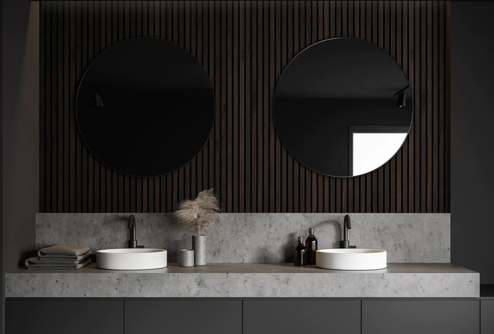 The panels will be absolutely fine in these areas as long as they are not in direct contact with water, although we recommend applying a water-resistant finish to the front of the slats to protect them against any moisture or humidity.